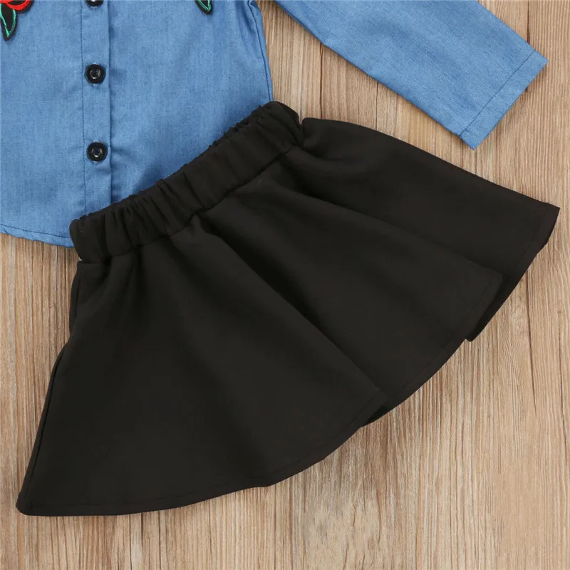 Good Offer for 0-5Y Toddler New Kids Baby Girls Infant Long Sleeve Denim Tops Shirt+Tutu Skirts Dress 2PCS Jeans O