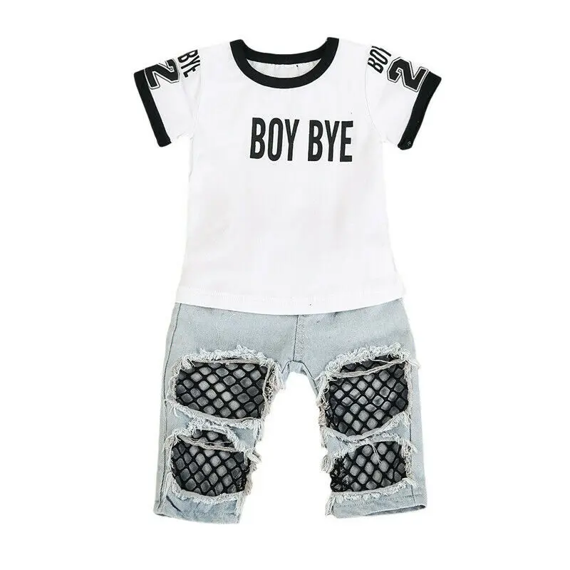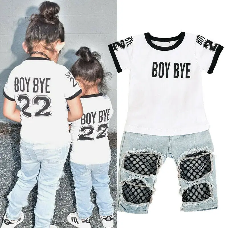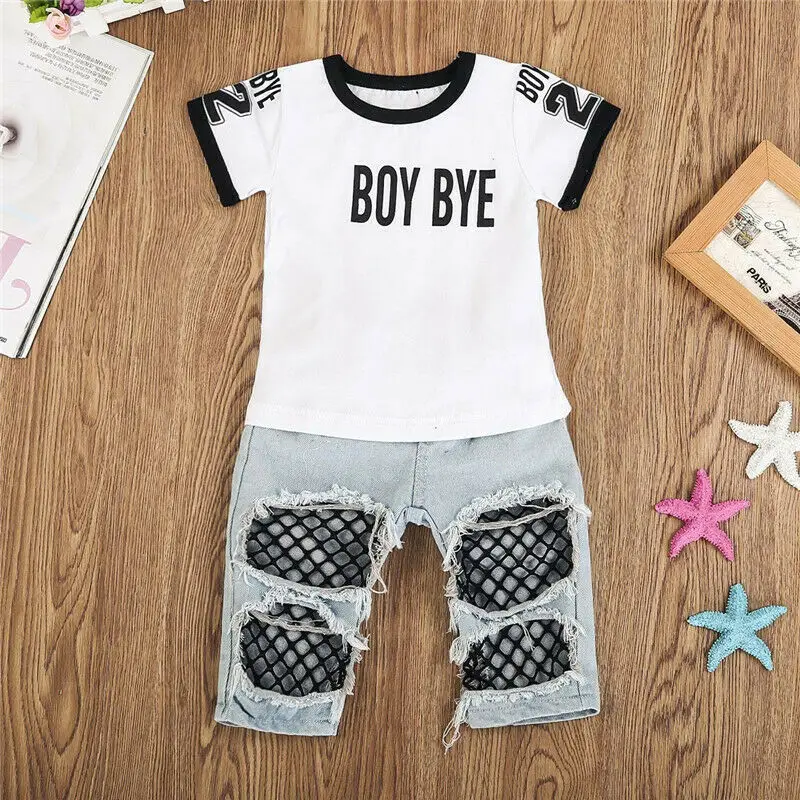 Cheap Price for 2019 Kids Baby Girls T-shirt Tops Mesh Hole Denim Pants Jeans Outfits Clothes /BL2