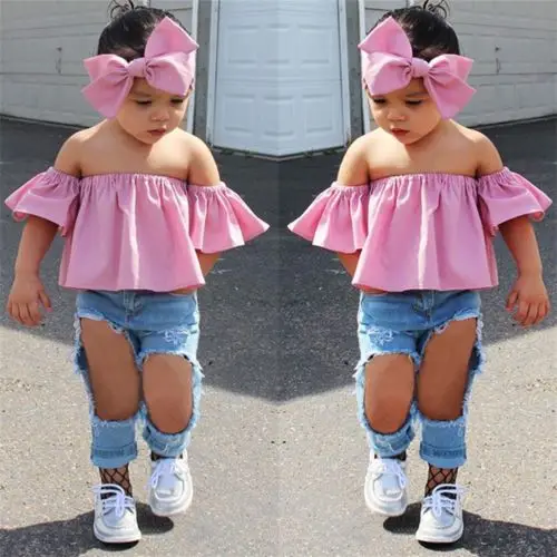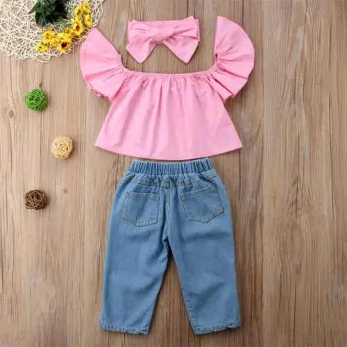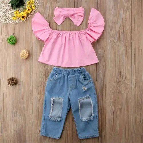If You search information for 3Pcs Kids Baby Girl Off Shoulder Short Sleeve Chiffon Tops Long Hole Jeans Clothes Headband Clothes, then 3Pcs Kids Baby Girl Off Shoulder Short Sleeve Chiffon Tops Long Hole Jeans Clothes Headband Clothes may be make you love